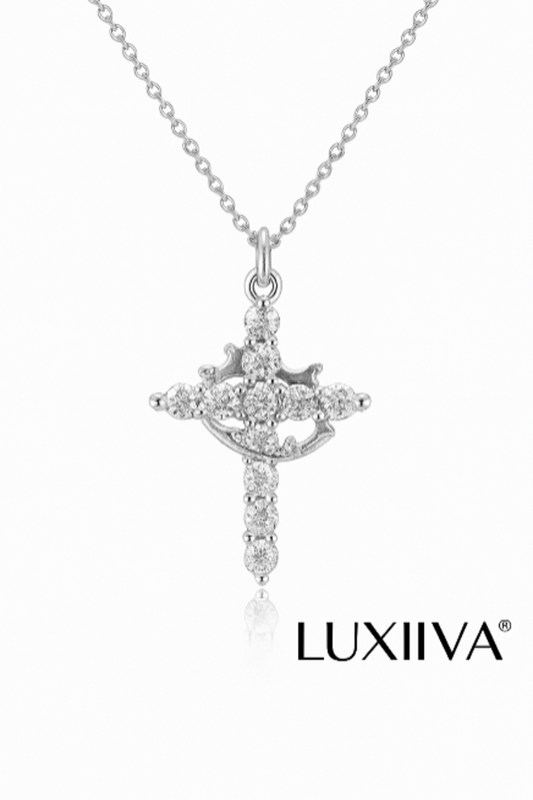LUXIIVA® SPARKLING CROWN CROSS NECKLACE (Ready to Ship)